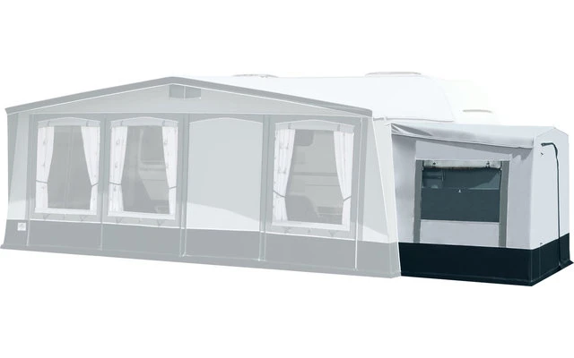 Passender Anbau fĂŒr das Brand Palazzo Vorzelt zur Erweiterung des Wohn-/Stauraums. Der Anbau kann auf der rechten und/oder linken Seitenwand montiert werden. Mit separatem EingangsreiĂverschluss und LĂŒftungsfenster. GrundflĂ€che am Boden ca. 150 x 210 cm. Die GröĂe der Kederschiene betrĂ€gt Ă 7 mm.