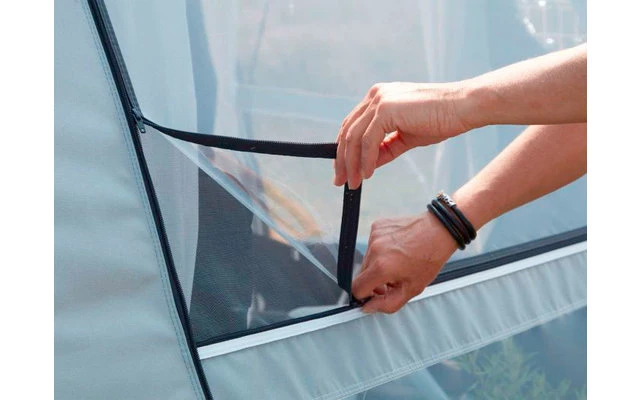 Das Isabella Air Cirrus North 400 ist ein hochwertiges, aufblasbares Reisevorzelt für den Wohnwagen für Camper, die auf der Suche nach einem qualitativ hochwertigem Vorzelt sind, das dennoch leicht und aufpumpbar ist. Dank des benutzerfreundlichen 1-Punkt-Luftsystems, welches aus miteinander verbundenen Luftschläuchen besteht, kann das Cirrus über ein einziges Ventil vollständig aufgepumpt werden. Die fast senkrechten Wände und die Lichtleisten im Dach sorgen für ein angenehmes und geräumiges Gefühl. Dank des atmungsaktiven Isacryl Materials ist der Aufenthalt bei allen Wetterbedingungen angenehm. Die Vorder- und Seitenwände können vollständig mit dem Reißverschluss entfernt werden, um ein komfortables Vordach zu schaffen. Mit der mitgelieferten aufblasbaren Verandastange ist es möglich, eine der beiden Vorderwände zu falten. Wenn Sie zusätzlichen Platz benötigen, können Sie das Cirrus sowohl links als auch rechts mit dem optionalen Anbau erweitern. Auch für Wohnwagen mit Hubbett (Gesamthöhe der Fahrzeugs bis 275 cm) passend.