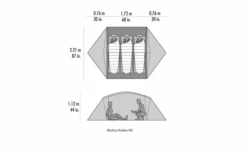 Maximaler Platz:Â Viel Bewegungsfreiheit im Kopf- und Ellenbogenbereich im gesamten Zelt, zwei groĂźe Eingangsbereiche seitlich bieten Platz fĂĽr die AusrĂĽstung.