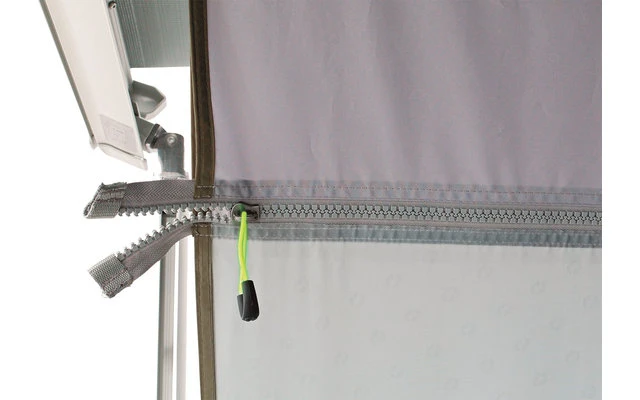 Das Outwell Fallcrest Side Panel Set wird seitlich an der Markise von Campingbussen befestigt und sorgt fĂŒr PrivatsphĂ€re und zusĂ€tzlichen Schatten und Schutz vor Regen und Wind. Es wird mit einer ReiĂverschluss-Tasche um die Gelenkarme der Markise gezippt, dabei sorgen Abspannleinen und -punkte zuverlĂ€ssig fĂŒr StabilitĂ€t. Beide WĂ€nde lassen sich teilweise zusammenrollen und mit Knebeln befestigen. Auch so bieten sie noch Schutz vor den Elementen. Im Zusammenspiel mit dem Hillcrest Tarp schaffen die Seitenteile einen gut geschĂŒtzten Vorraum unter der Bus-Markise. Das sehr geringe PackmaĂ lĂ€sst sich einfach verstauen.